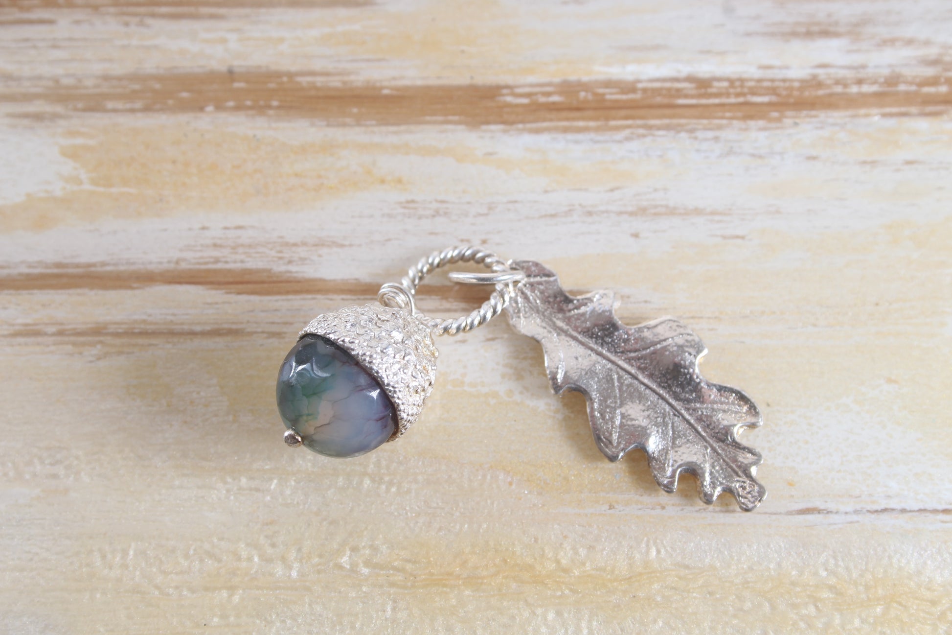 Acorn charm (various colours) with silver oak leaf (10mm)