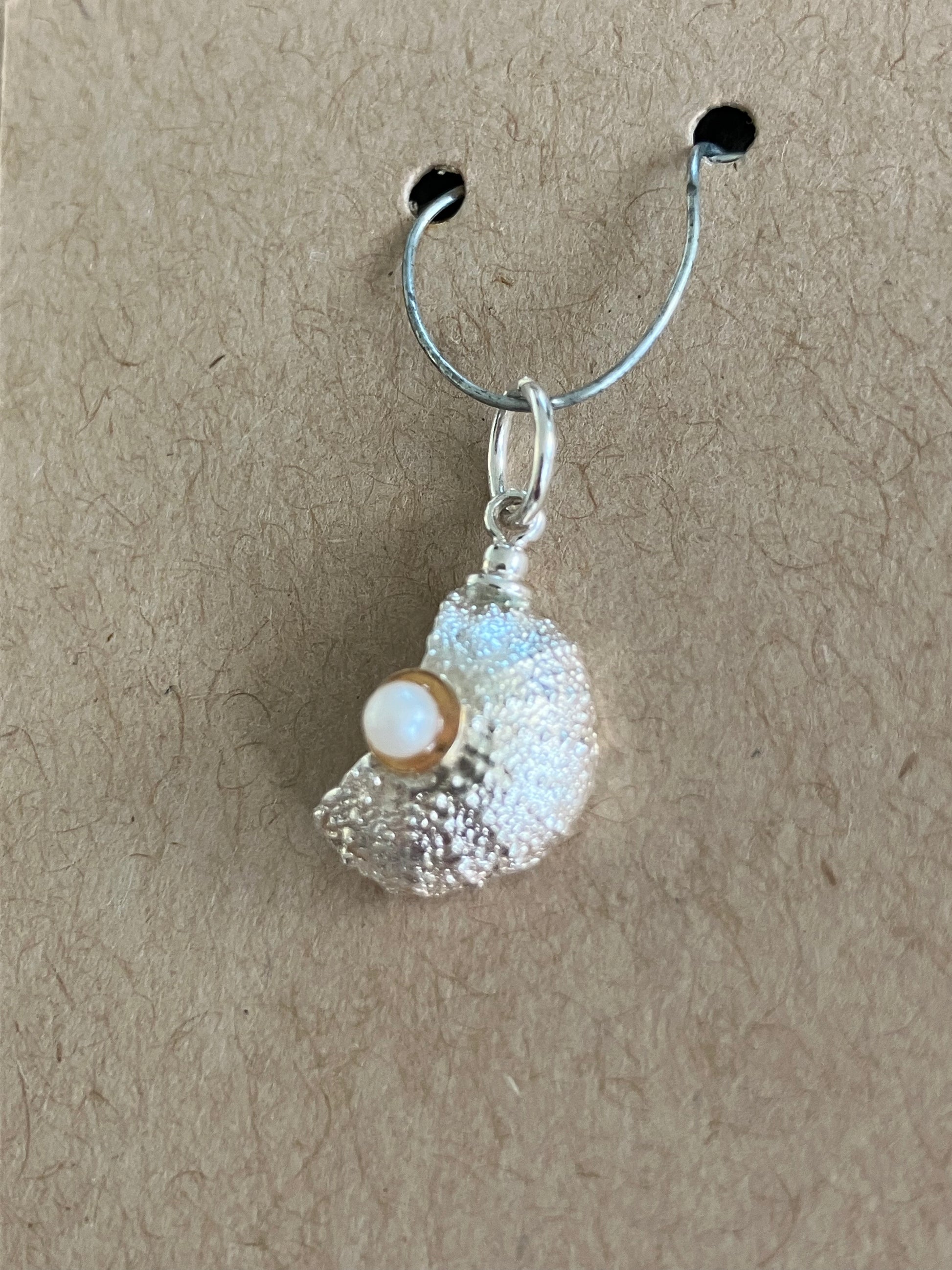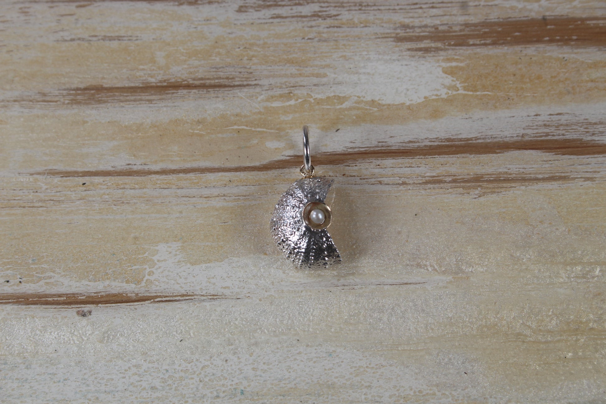 Broken Sea Urchin pendant set with a pearl. Left or right side available