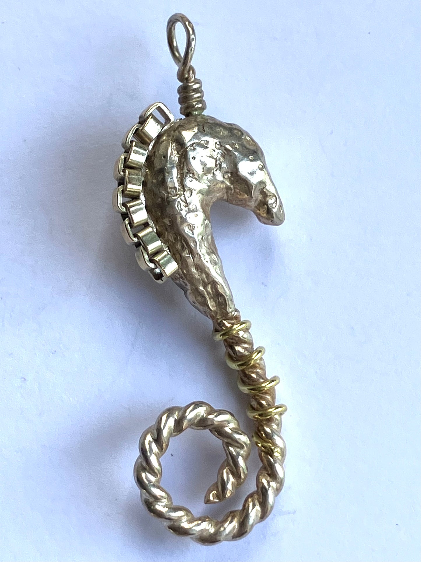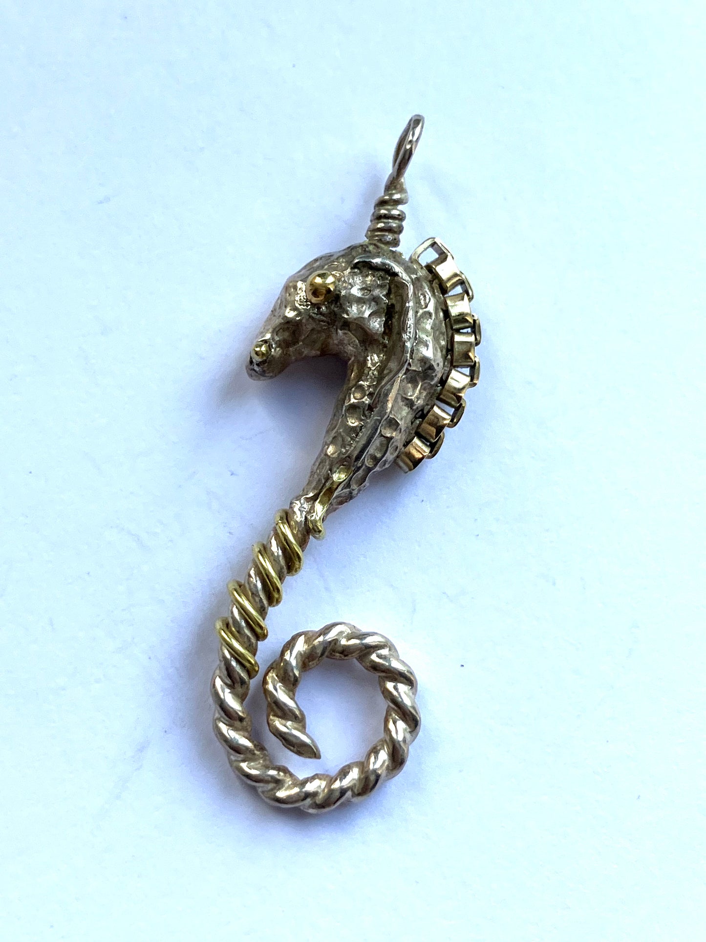 Intricate seahorse pendant in sterling silver and gold