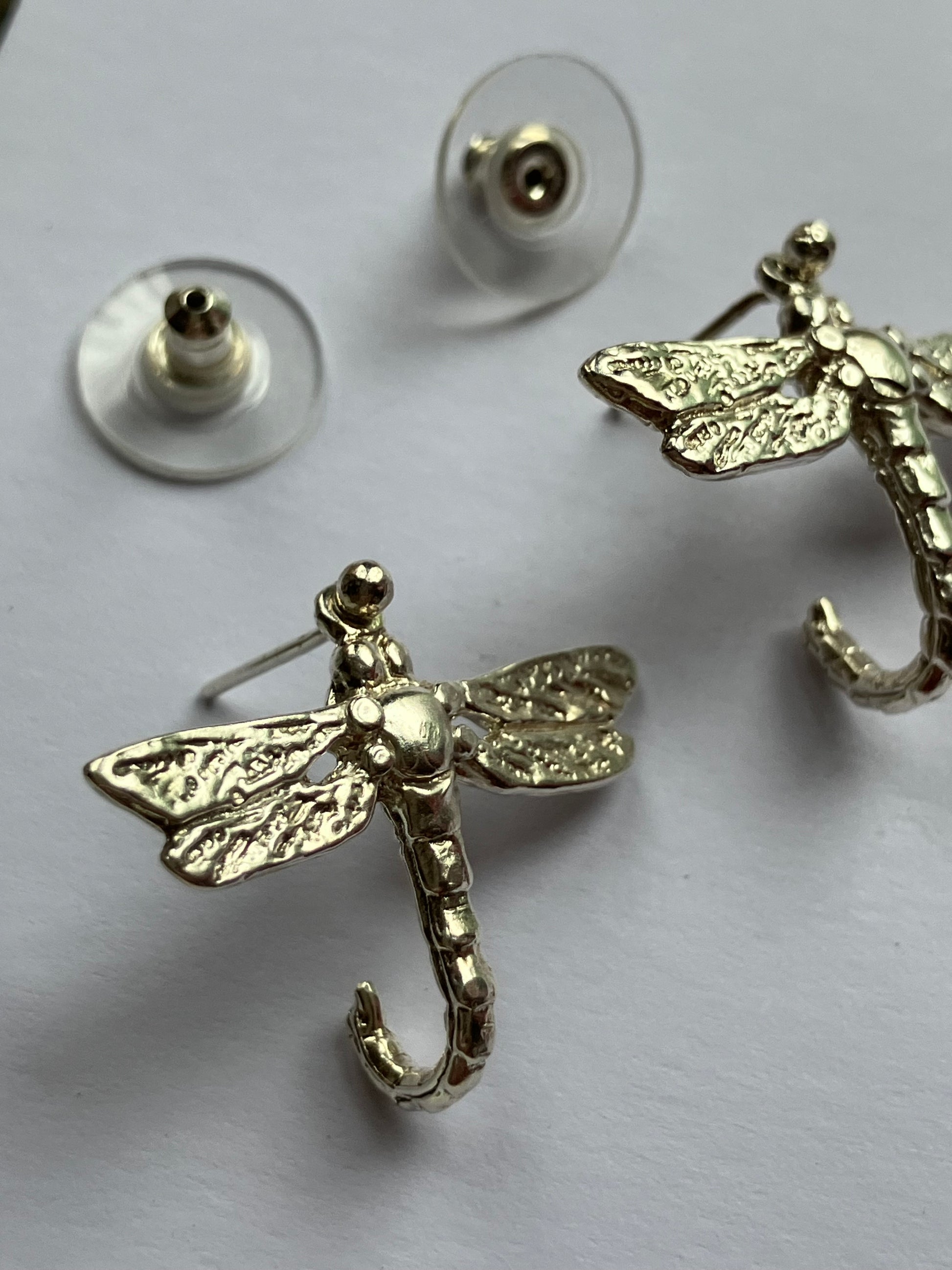 Large Silver Dragonfly Earrings