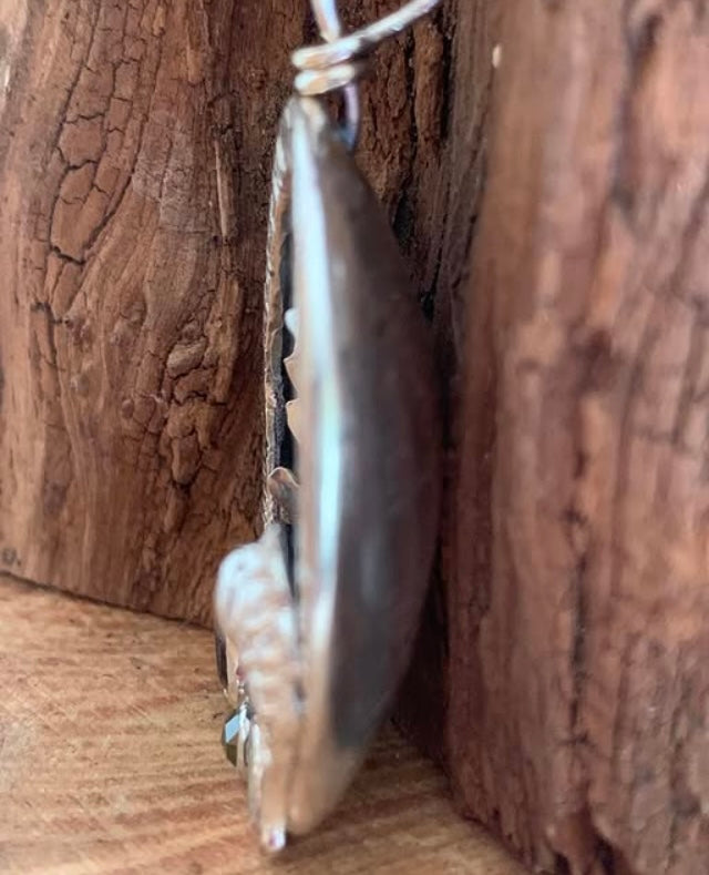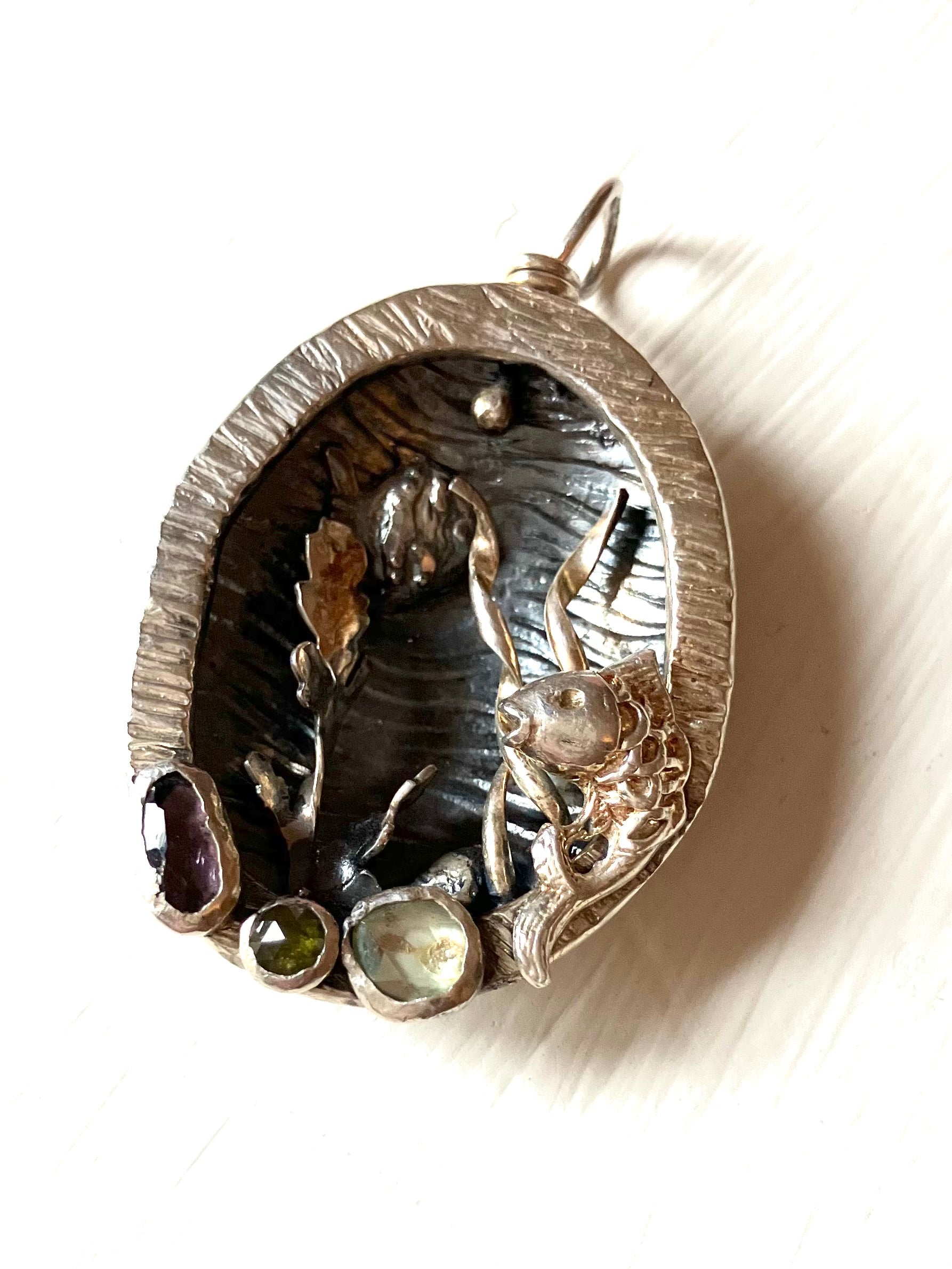 Large Silver Sea Scene Pendant with Tormaline & Rose Cut Diamond