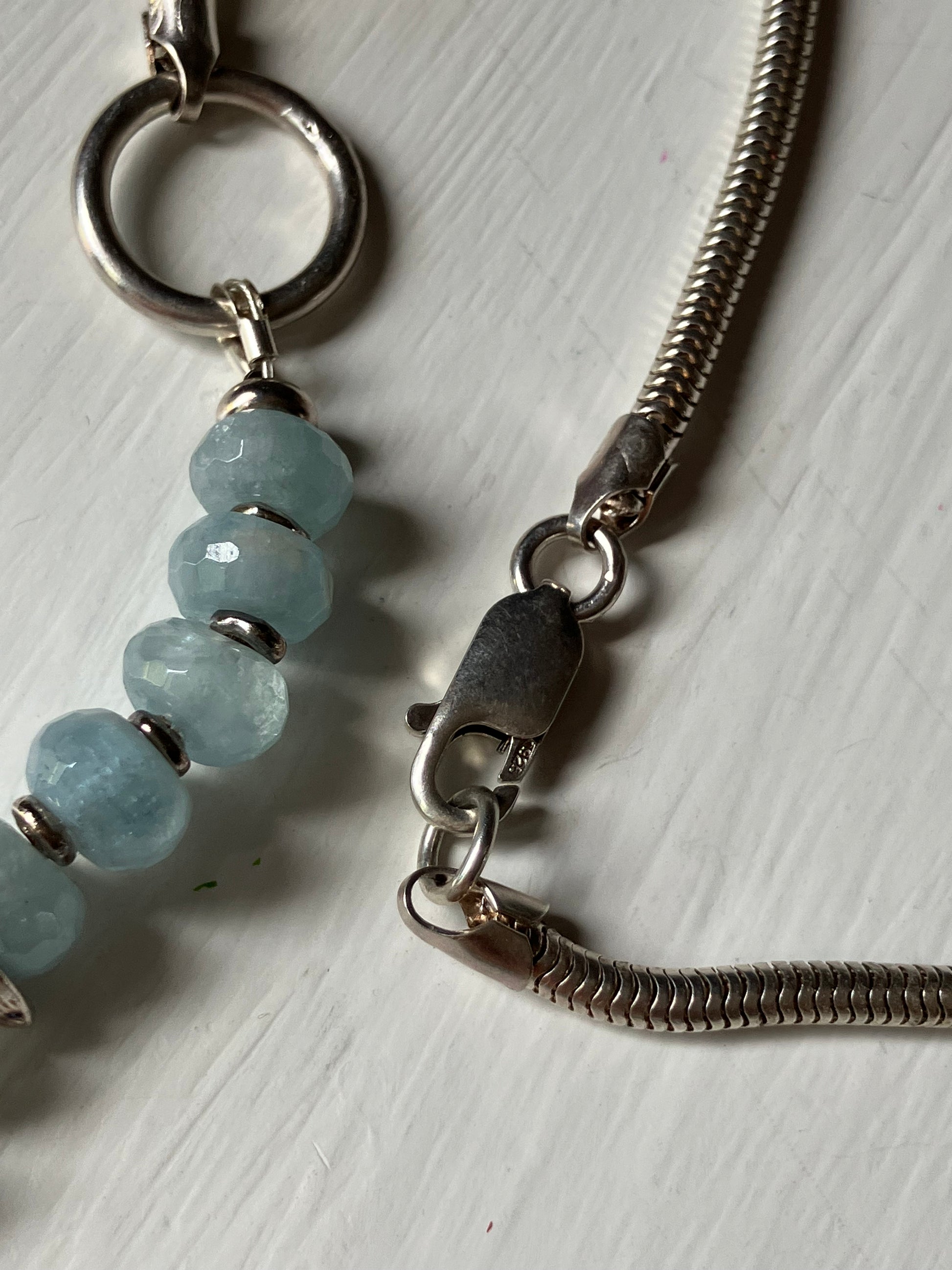 Silver Starfish necklace with aquamarine and snake chain. Approx 43cm clasp to clasp.